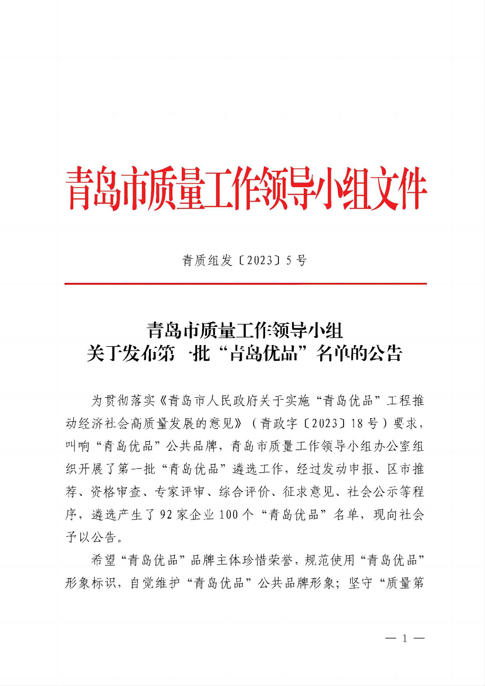 9月22日,青岛市质量工作领导小组公告发布第一批“青岛优品”名单,集团旗下崂山白花蛇草水、崂山可乐荣耀上榜。此次入选“青岛优品”,是继“好品山东”“青岛好礼”之后,崂矿产品三获殊荣,标志着集团旗下崂矿产品的优良品质与健康属性获得社会各界的一致认可。